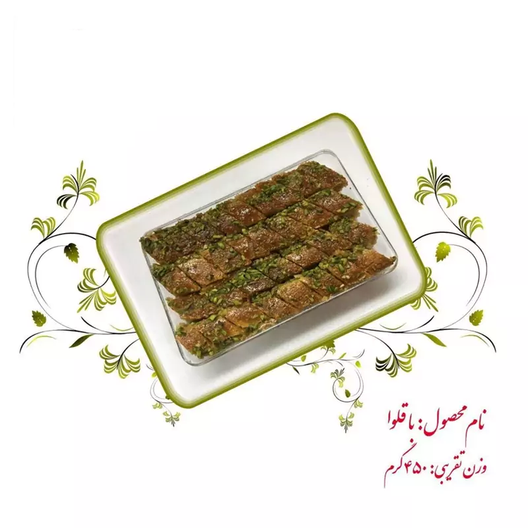باقلوا: شربت اینورت ،مغز بادام پودر قند آرد گندم لواش باقلوا روغن گیاهی هل